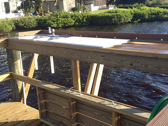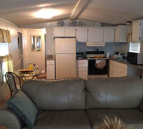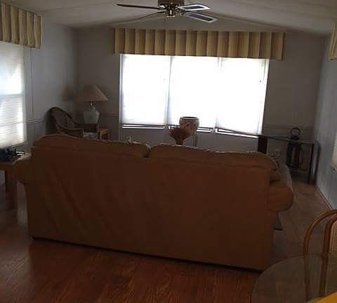 Great home large living room and open kitchen. New laminate floors and new bathroom vanity. Large enclosed patio with washer-dryer. Partially furnished and low lot rent in this friendly age qualified park with a long fishing pier!