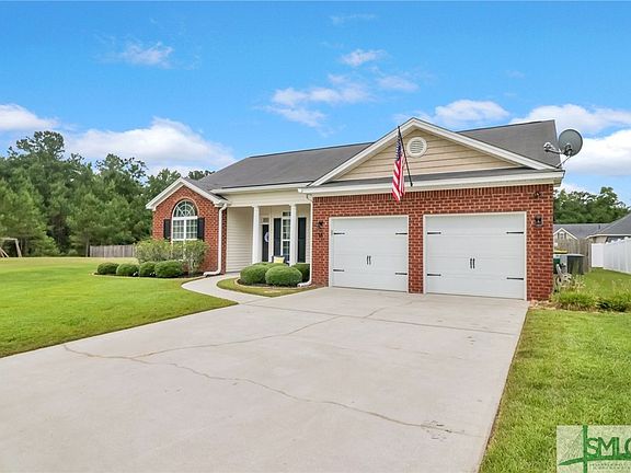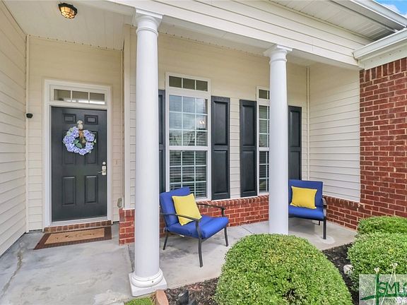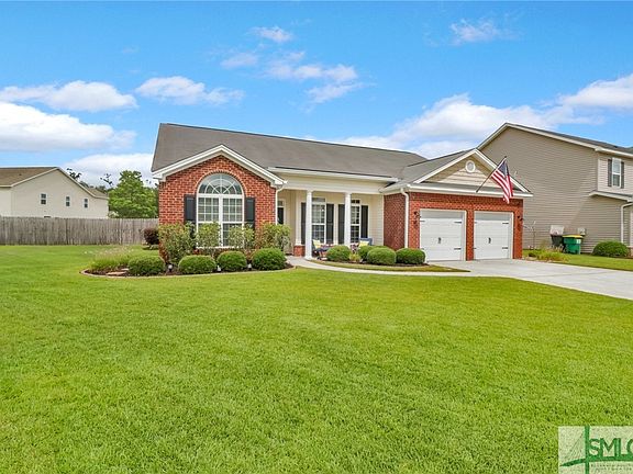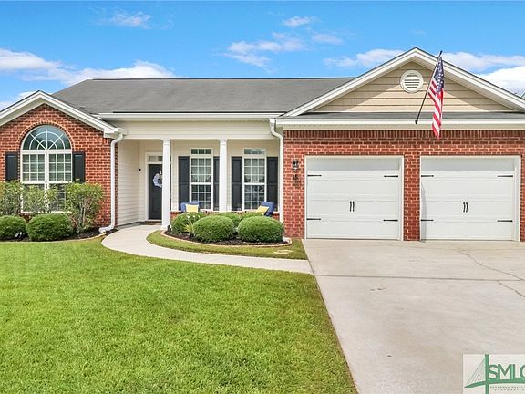 Meticulously maintained ranch style home located in a cul-de-sac at the back of the subdivision! This home boasts granite counter tops, tall cabinets and stainless steel appliances. Most recent improvements are upgraded light fixtures through out the home, painted cabinets in kitchen and bathrooms, newly painted master bathroom walls and a beautiful accent wall in the master bedroom. Lots of natural light in living and dining areas. High ceilings and open (split) floor plan enhance the desirability of this home. Floors are wood laminate, carpet in bedrooms, and tile in baths and laundry room. Nice size screened porch with outside grilling pad. Gutters on front and back of the house. The sprinkler system covers the entire yard. The lawn is very healthy and in season. Community amenities include a clubhouse, pool, fitness center, playground, tennis, basketball and volleyball courts. 7 mins to Savannah International Airport, 25 mins to downtown Savannah and 5 mins to Tanger Outlets.