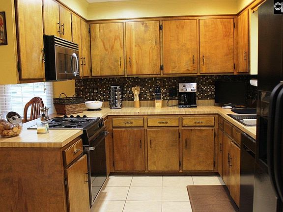 - Kitchen: Bar, Counter Tops-Formica, Cabinets-Stained, Backsplash-Tiled