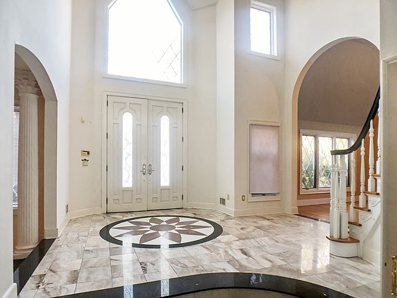 This custom home sits in one of the prettiest locations in Holmdel. With attention to detail and design, this 5 bedroom 4 1/2 bath offers a two story marble foyer leading to a formal living room and dining room with great flow for entertaining. Custom molding throughout. Dining room has a built-in wet bar. Gourmet kitchen. French doors in sun-room open to backyard patio. Master bedroom with a fireplace, Jacuzzi and steam shower. Amenities include a circular stamped driveway, vaulted ceilings, custom moldings and marble flooring.