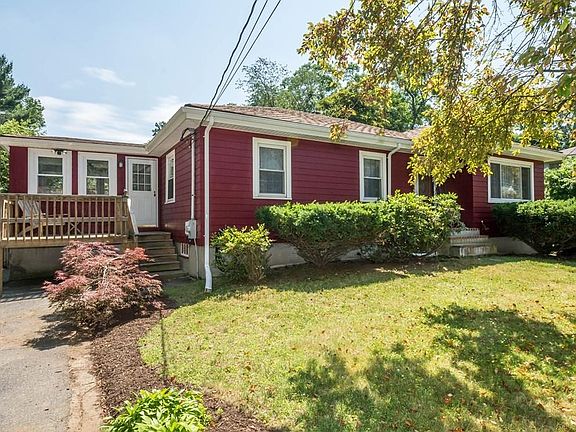 Great move in ready home in Wilmington! This three bedroom one bath hip roof ranch has beautiful original hardwood flooring, large eat in kitchen with maple cabinets, silestone counters and stainless appliances. Dining room right off kitchen. Spacious living/family room with large windows letting in lots of natural light. Good size bedrooms with hardwood flooring, ample storage throughout including attic and basement. Beautiful, recently updated full bath. Basement has option to finish, and has wood burning fireplace. New Buderus boiler (2017), newer Roth oil tank (5 yrs), newer 50 gallon hot water tank (3 yrs) and young roof (8 yrs). Large, sunny fenced in level yard. Good size deck constructed with composite decking (Azek) right off kitchen, Storage shed and patio. Close to 93 and commuter rail and close to schools and shopping!!