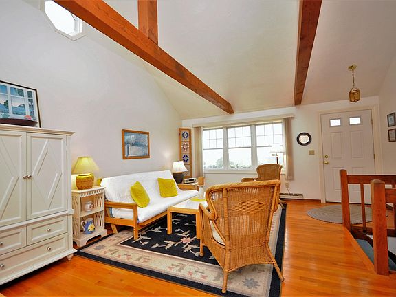 Sagamore Beach with ocean views? What more could you ask for! Welcome to this lovely home perched nicely in Sagamore Beach. This home has been loved by the same family for over 25 years. As you walk through the front door, the open living room invites you in with beamed cathedral ceilings, hardwood flooring, and large windows to capture the ocean view. Off the living room you'll find the nice dining area and kitchen with a slider leading to the large deck and back yard. Upstairs are three good sized bedrooms and a full bath. The lower level family room is finished with carpeting, a wood burning stove, full bathroom and walk out access to the back yard. The yard is nice and private with a shed for storage. Sit back, relax and enjoy this great home in Sagamore Beach.