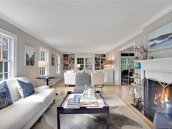 This classic colonial beauty in Darien, designed with 5 bedrooms and 3 baths. Spacious, bright and elegant, this traditional home, spanning approximately 4,000 square feet, is convenient to town and has been thoughtfully renovated. Impressive features include an expanded gourmet chefs kitchen with Wolf and Sub-Zero appliances, adjacent family room, formal dining room, living room with custom bookcases and guest suite on the first floor. Downstairs, the basement is fully finished and doubles as a wonderful playroom. The master suite, complete with a well-designed master bath, is ideally located on the second floor, along with three other bedrooms. The third floor provides the perfect spot for a private home office, workout room or art studio. Rich wood floors, two fireplaces and an abundance of storage are additional amenities of this sophisticated and comfortable residence. Outside, the front and back lawns have been professionally landscaped. There is a large covered porch, perfect for entertaining and outdoor dining, making this home the ideal solution for the most discerning buyer.