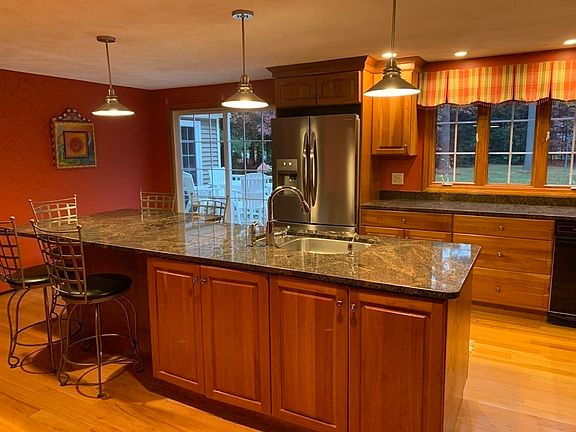 Enjoy family life at its best in this classic 4 bedroom Custom New England home with private 1 acre yard complete with basketball court. Additional family suite with a living room/ kitchen combo, full bath with laundry, and private deck and stair lift. This 4000 sq ft home has multiple decks, a walk up attic with cedar closet and additional finished space in the basement. Spectacular family room with open loft, woodstove and three season porch. Cozy living room has gas fireplace and attached sunroom. Located near Rt's 93 and 495 for easy commute north or south.