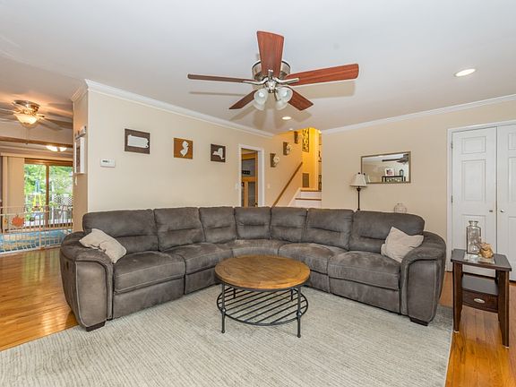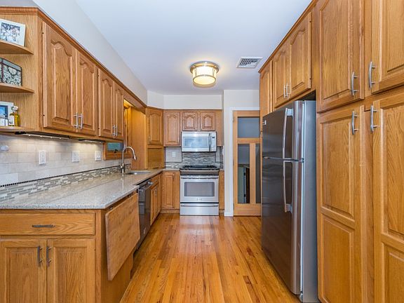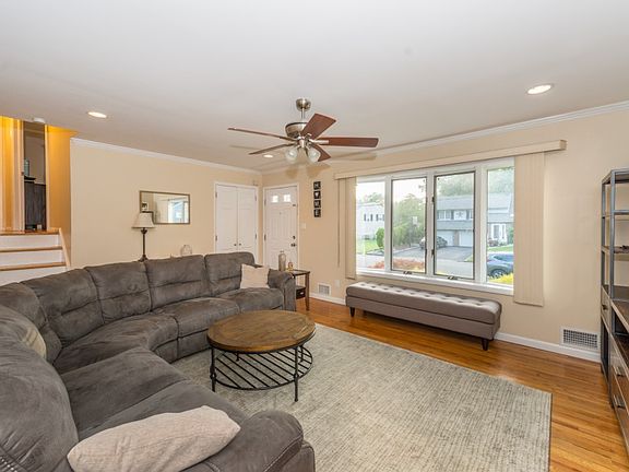 Look No Further!! Lovely split level Home in desirable location features Large Living Room, Eat in kitchen, Formal Dining Room with SGD to Deck and Yard with swimming pool. Lower level features Office/Den, Powder Room, Laundry and Utility Room. Second level features 2 bedrooms and updated full bath with jetted tub and shower. Third level features Master Bedroom with Plenty of Storage space. Hardwood floors, recessed lighting, Central air and gas Heat. Short Walk to train to NYC and Bus to NYC. Don't miss the opportunity to purchase this lovely home.