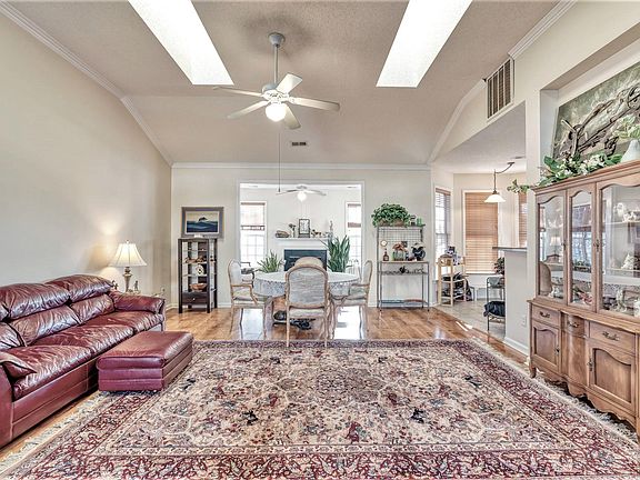 Lovely home in The Cottages Section of Livingston Farms! Nice corner lot and cul-de-sac location. Enjoy the mountain views and low maintenance with the HOA providing lawn service. A little different and nicer floorplan than most of the plans in Livingston Farms--11 ft ceiling in great room with 2 skylights. Breakfast area in kitchen, split BR plan, finished sitting room with fireplace. Primary BR and bath offers a garden tub plus separate shower, covered patio area for outdoor grilling and lush flower gardens in a fenced backyard. Mountain views and paved community walking trail. There is a gas line on the outside to the fireplace to hook up to gas logs if buyer changes to gas FP.