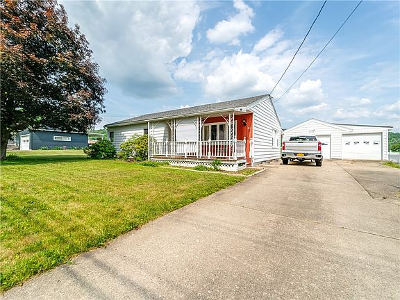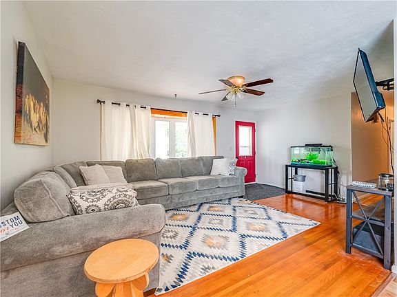 This wonderful 3 bedroom, 2 bath home features a covered front porch perfect for a couple chairs, a large living room with a picture window, ceiling fan and gleaming wood floors. There is an updated kitchen with natural wood cabinets, backsplash, tiled flooring and breakfast bar with seating for 4. The dining room is light and bright and there are 3 spacious bedrooms. There is a fantastic partially finished basement with a family room with natural lighting, an exercise area, and laundry room. Outside there is a large covered patio overlooking your good-sized backyard. Plus a 2 car garage and a shed!