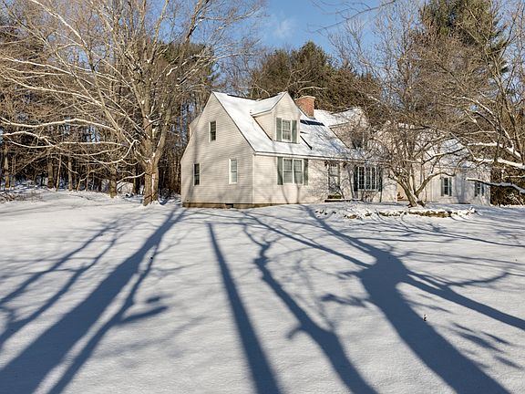 Spacious Cape features 4 bedrooms, 2 full baths, over sized 2 car garage, and private 1.6 acres of mostly level land. First floor features sun filled living room with cozy fireplace and hw floors. Renovated kitchen with desirable white cabinets, granite counters, tile backsplash, and over sized island- ideal for entertaining. Open concept dining space overlooks Kitchen area and has direct walk out to backyard. Two generous sized bedrooms on first floor and two more on second. Modern feel throughout with updated baths, fresh paint, and great overall size and storage. Potential to finish lower level. Spacious yard, new roof, new driveway, and don't forget about solar panel system in place to help cut down on utility costs.