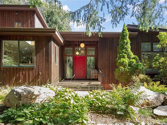 Right on the border of New Canaan! Natural light abounds in this well maintained contemporary located on a private lane. As you walk through the front door into the large living room you're greeted with a back wall of windows with sliders that look directly out onto the patio and pool! The living room ceiling vaults up to 20 feet towards the back of the house which creates an openness that brings the outdoors in. The large stone fireplace keeps you warm on those chilly nights. Step up from the living room into the bright kitchen that overlooks the pool and boasts three 6ft skylights along with sliders to patio. The formal dining room offers a skylight that glows brilliantly during the day. From the dining room step down into the cozy family room which looks out in to the front yard. First floor Master Sutie has sliders to patio & pool along with a full bath that includes bidet, Jacuzzi, separate large shower stall, walk-in closet and laundry chute. The basement is heated with fireplace, 8 foot ceilings and can serve as a workshop or finish off to create a playroom, exercise room or theater. The 3 car attached garage is also heated and has entry to and from the kitchen. Seclusion is the theme of the backyard with outdoor bar, large heated computer controlled salt-water gunite pool surrounded by trees & mature perennial plantings. This house is perfect for entertaining friends and family!