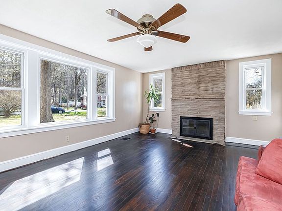 Welcome to this oversize L Ranch Home located in a lovely neighborhood on a quiet cul-de-sac! Enter into a spacious foyer to greet all your guests, spacious living room with warm and cozy stone fireplace, oversize kitchen with SS appliances and white dishwasher new '20, bright and cheerful dining room with open floor plan for entertaining groups of all sizes. Off the kitchen is a bonus sunroom/ family room/home office area perfect to enjoy the views of the generous size backyard that will be great for family BBQ's or gardening and game playing. Features include hardwood floors, public water and sewer, washer and dryer new '20, central air, replacement windows, one car under garage, roof '13 APO,new front door '21 and back door '23, Mass Save house insulated '21, new driveway and walkway '23. Make this house your home!