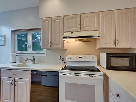 Welcome to 15 Michaels Green! This bright end-unit condo has an abundance of space & unlimited potential. Enjoy breakfast w/ a view from the box windowed breakfast nook or entertain your guests through the passthrough to the dining room. The first floor offers tons of flexibility with its open concept floor plan, sliders to the patio & deck, & a full bathroom. The central fireplace grants a bit of separation between the living room & family room while keeping the connected atmosphere of the space. Going up to the second floor via the skylit stairwell brings you to the primary bedroom with two spacious closets & separate entry to the main full bathroom. The second bedroom offers two large closets, & scenic views of the complex through the large windows in both bedrooms. The semi-finished, heated, walkout lower level offers a ton of open space. Laundry on the second floor.