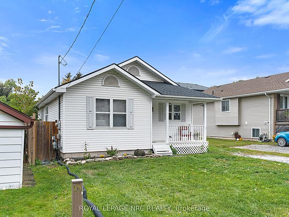 Surprisingly Spacious with 1075 sq ft on the main level plus another 1000 sq. ft. finished in the lower level! An unassuming but attractive white bungalow on a quiet street in the peaceful Hamlet of Dain City. This home is much larger than it appears and has an amazing amount of well-designed living space. Enter the front door and discover a large living/dining room with front door coat closet & new laminate flooring. The kitchen offers lots of cupboards, 3 kitchen appliances, a pantry closet plus lots of table space in the dinette with sliding doors to the concrete patio. The main level offers 3 bedrooms plus a 4th downstairs. The lower level "double room" bedroom is ideal for the teen who wants his own hangout plus a bedroom. There is a recreation room & a 2nd bathroom downstairs as well. Other features include: no carpeting, owned hot water tank(2021), newer exterior concrete patio, sump pump with battery backup, high ceilings (7'8") in basement plus lots of natural light. Exterior is a low maintenance vinyl clad home with a private driveway, 2 year old roof shingles & a charming covered front veranda. The rear is fully fenced and offers a shed, 2 large patios plus a really nice screened-in gazebo. If you are the outdoorsy type, this area is known for its water sports on the canal, walking trails & its country-like feel on the edge of Welland. Perfect for retirement couple, large family or first time buyers, which narrows it down to just about everyone. Don't miss this opportunity & arrange a showing today. Flexible closing but available immediately.