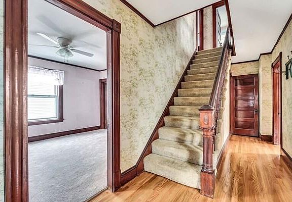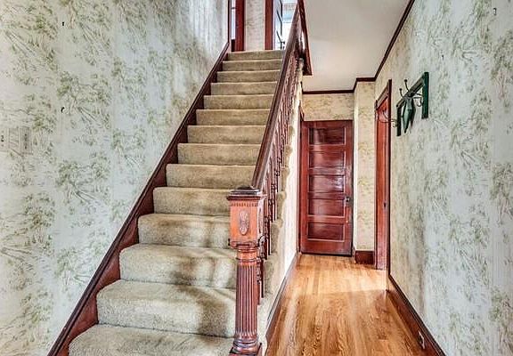 Grand colonial with the elegance and charm of yesteryear. The stately exterior is enhanced by a large front porch with beautiful stone and wood columns. The center entrance welcomes with beautiful woodwork, period details and brand new, gleaming hardwood floors through the formal living room and dining room with built in china cabinet. The second living room or den features a stunning decorative fireplace with original wood mantel and brand new carpet. The eat-in kitchen features a butler pantry with access to the dining room and has an attached mudroom with exterior access. The second floor has 4 corner bedrooms, a full bath and a heated sunroom, perfect for an office. Additionally, the walk up attic offers room for expansion. Enjoy a large private yard and large work shed. Conveniently located to Woburn Center, restaurants, public transportation and major highways.
