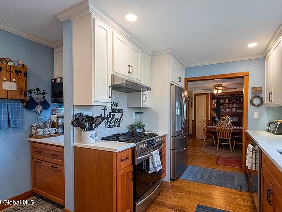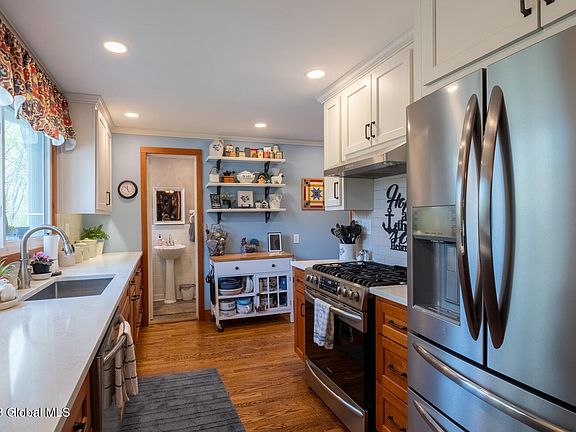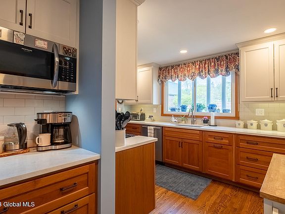 This charming Craftsman bungalow has been lovingly maintained and is located in Saratoga County. The home is close to Ballston Lake and walking distance to Steven's elementary and the high school. The home features recently remodeled kitchen with quartz counter tops, bathrooms, and a two story addition between the kitchen and garage. Features include hardwood floors in many rooms, a 3 season front porch, upgraded electric, windows replaced in 2017, many built in's, gas fireplace, and walk in closets. The over sized lot offers privacy and a patio for entertaining with landscaping. Located close to shopping and only 20 minutes from Saratoga Springs, close to downtown Schenectady and the village of Burnt Hills. This home is warm, inviting, and move in ready!