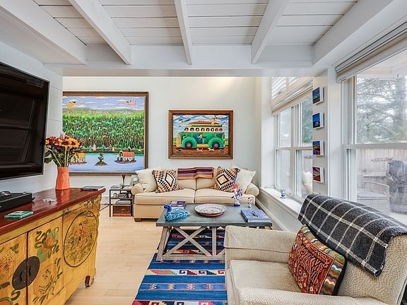 East End contemporary home is close to the Gallery District of Provincetown and features updates throughout. The light-filled open two story living/dining area has new high-end lighting, custom window blinds and shutters and opens to a spacious private patio with new bluestone and fencing. The modern kitchen has new Fisher & Paykel stainless appliances, a new gas stove, granite counters, and a new marble tile backsplash. New split AC/heat system. Upstairs are two bedrooms; the primary with custom built-in cabinetry. The second bedroom fits a queen size bed but is currently being used as a den. Both bathrooms are stylishly renovated, with Italian tiles and an oversized primary shower. There are newly installed solar panels that are owned not leased. There are new skylights and the home has been freshly painted with carpeting. In-home laundry, space to park 2 cars plus additional shared guest parking, large shared storage area, monthly rentals and pets for owners are allowed.