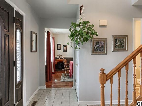 This Nicely Landscaped Home-Site in Dickinson Township, sits on a Huge Corner Lot with a Pleasant Country View. From the front door, you will enter the home into a two story Foyer with Ceramic Tile and a Lead Glass Door with Custom Sidelights. An Eat-in Kitchen with sliding doors leading out onto a backyard deck with a retractable awning, offers a Breakfast Bar, Subway Style Backsplashes, Stainless Appliances and Corian Countertops. In the One Acre Yard is an oversized Utility Shed for Landscaping Equipment