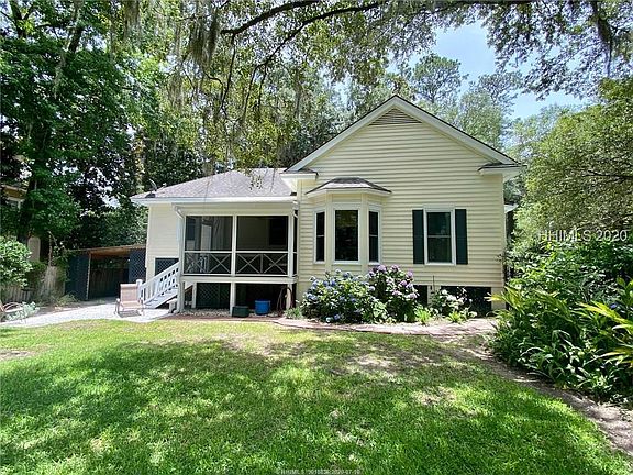 Old Town Bluffton living at its finest!! Take advantage of Lowcountry life via a walk or golf cart ride to all the festivals, restaurants, shops and Martins Place's private 100' deep water dock with covered pier on the May River. This home is nestled on an oversized lot with plenty of buildable space for a pool, additional 3 car garage and living quarters etc. The large outdoor garden is sheltered among a moss draped oak tree with beautiful blooming azaleas and hydrangieas. The home offers heart pine flooring, home generator, newer roof, siding, renovated kitchen, renovated baths, 9-11ft ceilings, and a whole list of major upgrades.