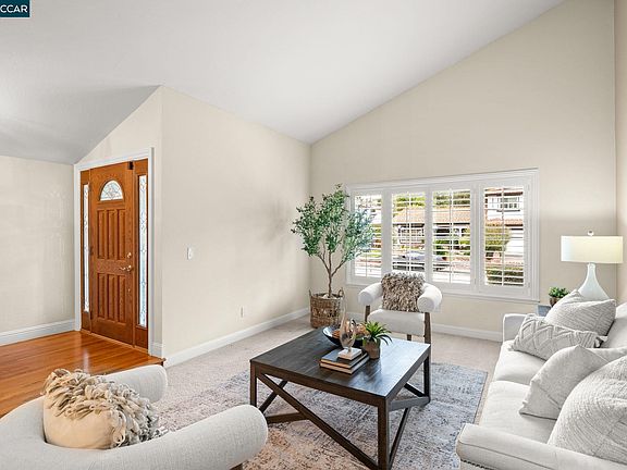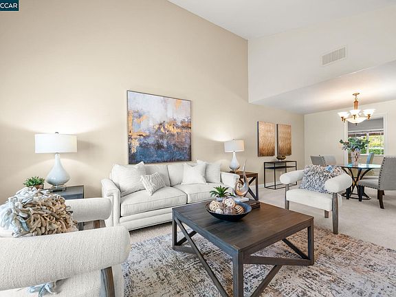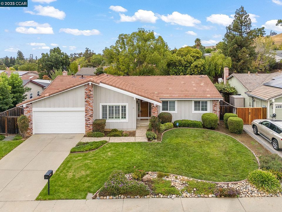 Charming & Updated Single Story Rancher in Regency Woods tucked away on a court location with Mt Diablo views! Living room offers semi vaulted ceiling and adjoins formal dining room. Gourmet kitchen features slab granite counters & island, ample cabinets, newer appliances & casual dining area with dry bar featuring slab countertop, display cabinets, and extra storage, perfect for coffee mornings or evening entertaining. Spacious family room includes wood flooring and cozy upgraded gas fireplace with slider to yard. Large primary bedroom offers crown moulding, dual closets with mirrored doors, lighted ceiling fan and slider to backyard private deck area. Primary bath boasts updated vanity with slab counters, dual sinks and built-in linen/display cabinet, tile flooring and an oversized stall shower with solid surround. Inside laundry room. Park-like backyard features professional landscape and hardscape featuring large covered patio, deck, lush lawn area, colorful flowers, multiple shade trees & ornamentals. Updates include: Dual pane windows, thick baseboards, wood floors, shutters, updated baths and more! This is a must see!