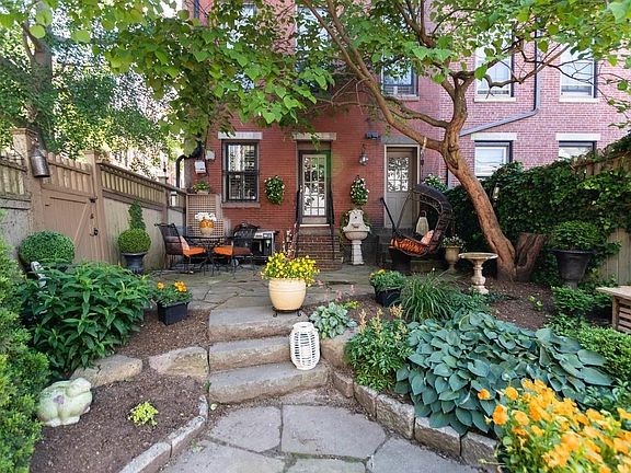 Location! Location! Monument Square! Majestic Corner Brick townhouse! Spectacular 2 Bedroom, 2.5 Bathroom Duplex with an Amazing Garden Oasis! Samuel Warren Home ca.1869. Refined Elegance! Exquisite Detail! Beautiful Formal Parlor! Towering 11' Ceilings! Crown Moldings & Medallions! Original Marble Mantel with gas insert! Oversized South Facing Windows! Elegant Dining Room with a Side Bay window and window seat! Entertaining Eat-in Kitchen with Granite Counters, Cherry Cabinetry, and a large pantry! Garden level offers two en-suite bedrooms! Master Bedroom suite with lavish spa bathroom! Built-in Bose speakers throughout! Enormous patio and lush tiered garden which has been featured on the Garden tour numerous times! A Rare Offering of impressive indoor Living space and unparalleled outdoor living space in the most sought after historic location in the City! Investment Grade Home!