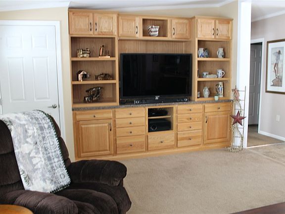 This lovely 3 bed room 2 bath home is absolutely LOVELY! Located in a 55+ community! homes situated on 1/4 acre lots with views! The views are absolutely outstanding. Bay windows provide ample light and abundance of views. VERY VERY well kept and maintained. The flooring is very inviting and cozy. LARGE master bedroom with master bath and large walk in closets for all or your treasures. Tv in Guest room to stay as well! All faux wood window shades stay as well!Stacking Washer and Dryer Stay with home as well as a mop sink in utility room! Large Island in kitchen with ample cabinets as well as a kitchen disposal system! Beautiful Built in entertainment cabinet in living room! This home has a great layout! This home has it all! The home spells out cozy in every aspect! Central air! Large rear deck with vinyl rails on back of home as well as a Finished and insulated small 2 car attached garage 18x 26 feet! Come see what makes us stand out from the rest! 55+ manufactured community that has been completely sold out! List agent is also the park owner. Park owners live on site.