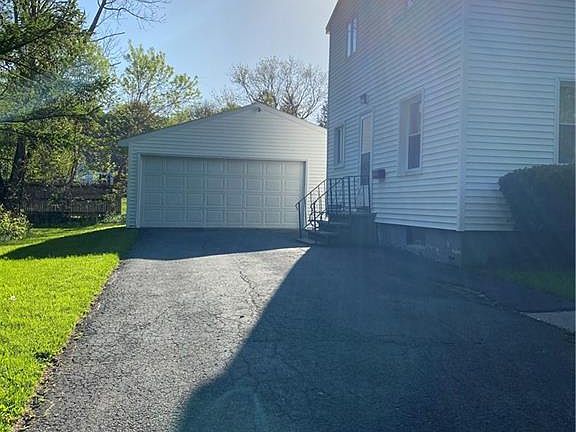 Hard to find 5 Bedroom New Hartford cape! 1 1/2 bath, hardwood floors, large 2 stall detached garage, large private backyard, central air, replacement windows.