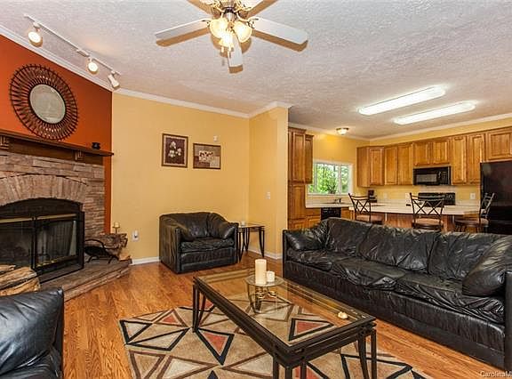 Better than new home just listed in Fairview, less than 8 miles from Asheville! Enjoy charming and updated finishes throughout this beautiful one-level home boasting three bedrooms and two baths with an open floor plan, crown molding, accent columns and a spacious lot. Large detached 2 car garage offers flex space with 2 bonus rooms and pull down attic stairs for extra storage! Move right in with all kitchen appliances conveying (including the deep freezer). Enjoy a spacious kitchen island with seating, oversized pantry, quality black appliances and beautiful formal dining area. Extended living spaces include the formal den/home office and separate family room with fireplace. Convenient walk-in closets throughout and a master suite boasting dual sinks, jet tub and separate shower! Beautiful outdoor living spaces include a charming covered front porch, a 10âEUR(tm)x22âEUR(tm) sun deck with winter mountain views and ample yard space, all in a quiet setting with good buffer between neighbors.