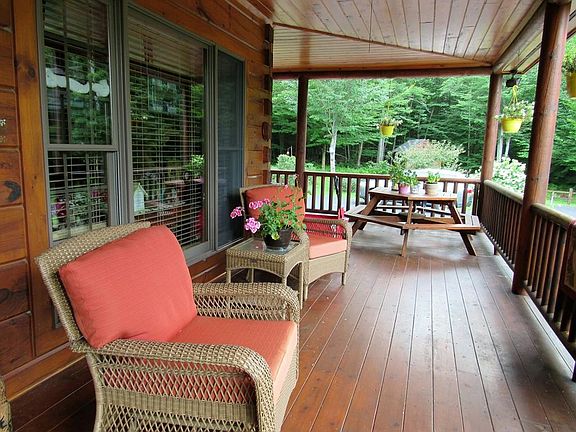 Extraordinary log home situated on a beautifully landscaped lot! Exquisite wrap around porch in the front of the home and lovely screened in porch on the back side of the home. Large open concept living room, kitchen with large island and dining room make for a great area for entertaining. Large walk-in pantry/laundry room. First floor boasts an ensuite and large walk-in closet. There is also a 2nd bedroom on the first floor along with another full bathroom. Second floor has a large bedroom and a large office/recreation room or another bedroom. Basement area is partially finished and is a great space for a recreation room. Other features are gas fireplace in the living room, an attached 2 car garage, central vacuum, generator, lovely gazebo, and shed. Minutes to North Conway, skiing, kayaking, hiking, biking, ATV'ing, snowmobiling and much more! In the heart of the White Mountains this will make a great year round or second home!