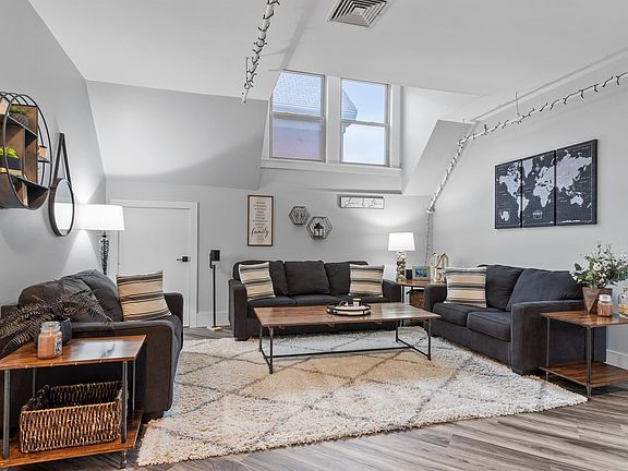 Absolutely spectacular. You have not seen anything like this! This penthouse unit boasts soaring ceilings, amazing open concept kitchen completely updated with stainless steel appliances, granite, recessed lighting and gorgeous new flooring! Exposed brick, wainscotting and triple windows make this space exceptionally grand. Two huge bedrooms with vaulted ceilings, windows and new carpets! NOW...two things you will not believe.. the amount of storage in and with this unit!! Both sides of this unit including closets in living room and kitchen as well as behind the refrigerator have full eaves storage, AS WELL AS a full separately deeded storage unit that is so large with windows that owner uses it as a home office space!! Lastly, this unit has the ability to EXPAND the square footage, with approval, into the hallway space creating another room or space for additional bath. It has to be seen to be believed! DO not wait on this one!