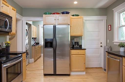 This pristine condominium is located in the sought-after location between Arlington Heights & Arlington Center. Close to Massachusetts Avenue, the bikeway & public transportation to Porter & Harvard Squares & the Alewife T station, this exceptional unit was extensively renovated in 2009. Features include a granite & stainless steel kitchen with a well-designed pantry/laundry room, a 14x11 formal dining room with built-in china cabinet, a sophisticated white bath with subway tile, a gracious private stairway and a front room with 8 windows that could be a den, playroom or hobby room. The generous second floor foyer offers a bonus - a convenient & spacious office alcove.There are two off-street parking spaces. In addition, the entire unfinished attic is deeded to this unit and could offer expansion possibilities. Enjoy the privacy of a back porch that overlooks a common backyard. Roof and gutters replaced (2010), boiler and hot water tank (2014). All you need to do is move in and enjoy.