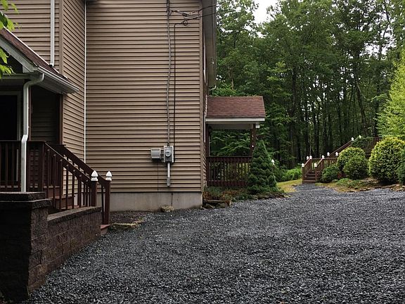 Remarks Like new contemporary with 3 floors of living on partially wooded lot in amenity filled Bear Creek Lakes. This home features 3 zoned central air, wood burning fireplace in living room, gas fireplace in master bedroom, large master bedroom with walk in closet, balcony, master bath with dual vanity and soaking tub, deck off dining room, fully finished walk out basement with 9' ceilings, concrete patio, covered porch, hardwood floors in dining/kitchen, 5 bedrooms, 4 baths, great vacation community for possible Air BnB investment, ENJOY THE WELL KEPT AMENITIES IN BEAR CREEK LAKES. 150 ACRE LAKE, 2 GUARDED AND SANDY BEACHES, OLYMPIC SIZE POOL WITH KIDDIE POOL, TENNIS & BASKETBALL COURTS, PLAYGROUNDS, SPECTACULAR SUNSETS FROM THE BOAT DOCK! MINUTES FROM