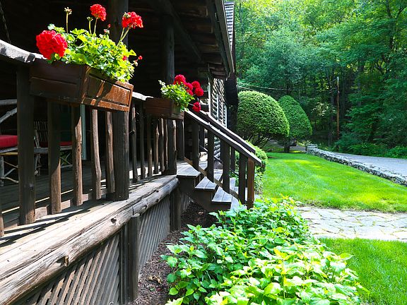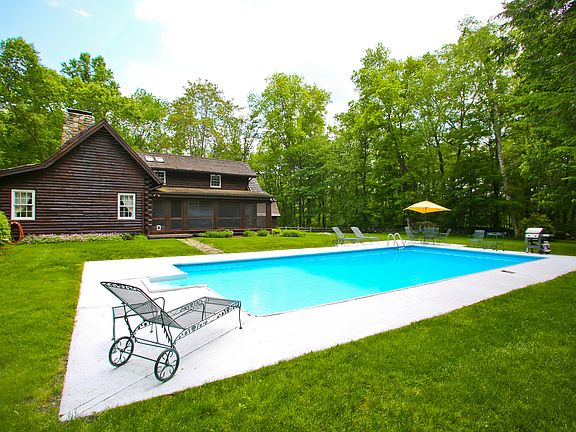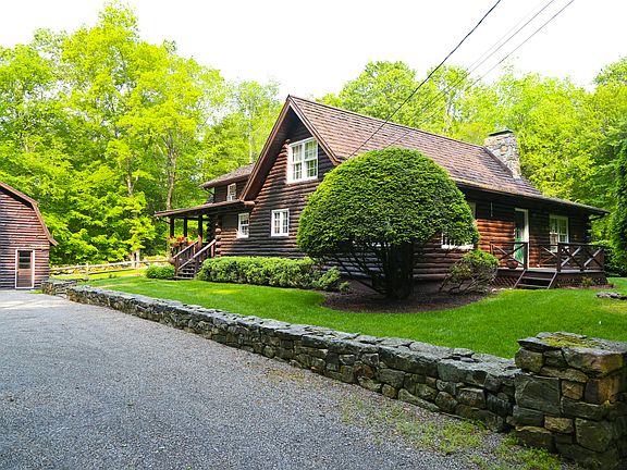 Enchanting cabin located on over 5 acres of luscious level lawn, framed by stunning stone walls, and a noisy brook with a lightly wooded portion of the property that provides privacy off this county road in South Kent. This Oasis is in turn key condition inside and out. Enter on the charming side porch with striking large posts and beams a perfect spot for morning coffee. Inside the open first-floor plan consist of Livingroom with the focal point of a floor to ceiling stone fireplace, exposed beams, a built-in bookcase, wood floors. This great room also includes a dining room and is open to the kitchen with an island an excellent design for entertaining. A large heated porch off the great room becomes an extension of the living space with plenty of room for dining, lounging, and even perhaps a nap! This porch takes in the beauty of the property and the pool and patio. Also on the first level are two guest rooms and a full bath. Upstairs is a lovely master suite with a beautifully tiled bathroom. There is a loft area that is currently used as an extra guest area but lends itself to other uses such as office, library or entertainment room. The house has several skylights and nice southern and western exposure. There is a two car detached garage with cement floor and a loft above for dry storage or potential living space. This property has had a strong track record of Air B and B use with great income for those with other owned properties or world travelers to profit Remarkable!