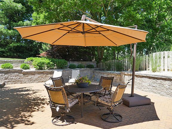 Beautiful ranch home on one of the best private, cul-de-sac lots you'll find, w/huge trees for privacy, tons of space to run & play ball, & AMAZING brick paver patio PLUS addl covered patio w/ceiling fan! In desirable Muirfield w/subd pool/cabana! 2300 sq ft on main lvl & approx 2000 more in finished walk out lower level! Large vaulted great rm w/hdwds, gas fplc & wall of windows w/awesome views! Formal dining. Kitchen w/42" cabs, granite w/custom backsplash, single deep sink, stainless appl, pantry & brkfst bar! Lg brkfst area walks out to covered patio! Master suite w/lg WIC & bath w/sep tub/shower/dbl sinks. 2 addl bdrms, full bath & MFL on main. Fabulous lower level w/huge family rm w/stone fplc, recreation/game table area w/wet bar, media rm w/TV/components/speakers & 4 awesome theatre seats, lg bdrm, office/sleeping area & full bath! Walk out to amazing brick paver patio! HUGE, fin 3 car gar, deep enough for 4 door truck! Inground sprinkler,warranty,more! Showings start Fri 6/18