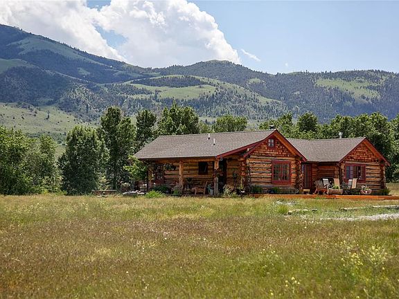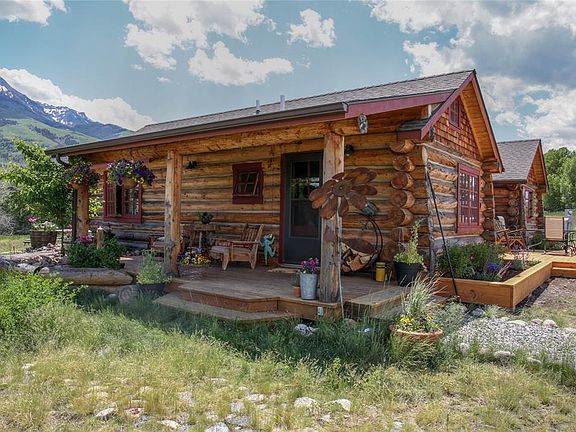 Truly Montana...one of the all time coolest cabins ever built in this area! Take a look at the pictures!! It has 2 BR and 2 BA and a small sleeping loft, views from every window, hand hewn logs, radiant floor heat and a wood stove. On top of that, it sits on 10 acres overlooking Six Mile Creek, one of the few creeks in Paradise Valley that flows all year. Emigrant Peak steals the view to the east, but the views north and west will win your heart as well. Only 5 miles from Chico Hot Springs and about the same from the new Sage Lodge (due to open in August) and the Old Saloon, providing you all the entertainment choices you can imagine. Just twenty miles from Yellowstone National Park and 30 mile from Livingston. This is in a part of Paradise Valley many visitors never see. So this is your chance! The property has been a part-time vacation rental and will be so this summer so please allow time for showings to be scheduled.