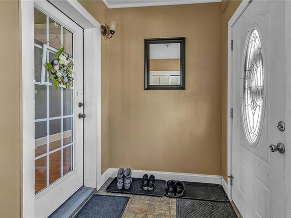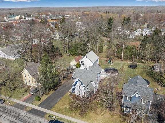 **OPEN HOUSE CANCELLED**Covered front porch welcomes you into mudroom entry hall. HWD flooring leading from LR to DR to Kitchen, each window (new '17) & doorway accented w/ decorative molding. Kitchen features recessed lighting, SS appliances ('18) & tons of storage w/ pantry. freestanding center island (nego) additional butler bar/workspace/storage area makes this kitchen highly functional. Bedroom/office, laundry & full bath make for easy 1st floor living. Additional 4 bedrooms and bath round out the 2nd lvl. Primary bedroom features HWD floor, ceiling fan, & huge walk-in closet. 2-story garage is perfect for all storage needs: equipped with wood floors, electrical, high ceilings & metal roof. Other features to the home incl: Bilco doors, full attic, public septic (pumped by village 2016), 26' above ground pool (new filter) w/ composite deck w/ vinyl railings & concrete slab patio