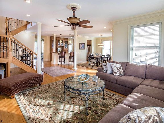 Room to Roam in this former builder's custom home Stately and sturdy construction coastal home offering 5 Bedrooms, 4 baths and den on first level easily converted to a bedroom, full bathroom complete with huge walk in shower to accomodate a first floor bedroom. Hardwood floors and elegant staircase. Plush carpeting throughout. Covered front porch, Fabulous kitchen with gorgeous cabinetry, crown moulding and granite breakfast bar, stunning dining room, and huge living room with gas fireplace . Full Size Laundry room with stationary sink. Full size attached garage leads into house. 2nd level features 3 bedrooms all with access to decks. 2 full bathrooms. Master Bedroom tranquil and spacious with private sundeck. Master Bathroom with separate jaccuzzi and European Tile Shower. Huge walk in closet. 3rd level Two bedrooms, full bath and deck ideal for guests! Porch, Yard 4 decks make this home ideal as year round or vacation home. Only steps to wide beaches and tennis courts. Wonderful location with Longport address yet close to all the fine restaturants, bay activities and shopping in Margate. 2020-08-31