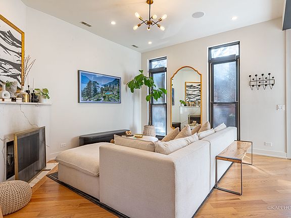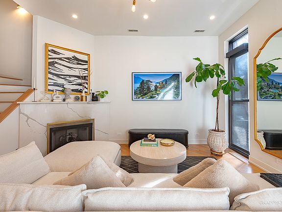 Rarely available single family row home on West Loop's most charming tree-lined residential street. Extensively renovated in 2020, this 4-bedroom, 4.5 bath home spread over 4 levels comes with a two car garage and multiple outdoor spaces. The curb appeal of this home is evident from the first glance, with the limestone exterior in excellent condition, and brand-new front steps including security gate, and fresh parkway landscaping of boxwoods and pea gravel. The center staircase of this home and high ceilings throughout allows more generously proportioned living room and kitchen on the first floor. The living room's fireplace and extra height windows make it light and airy in the summer and spring, and cozy and inviting in the fall and winter. The kitchen adjacent to the living room is a chef's dream with Subzero fridge and freezer, Wolf range and oven, Bosch dishwasher and tons of cabinet space for storage! A moody powder room completes the first floor. The second level has another beautiful living space to use as another living room, children's play room, you name it! Two bedrooms and two full bathrooms complete the second floor, with a back deck off one of the bedrooms. The third floor was completely reimagined during the 2020 renovation into a stunning, full floor primary suite. The generously sized bedroom includes California Closets, motorized blackout shades, an unbelievable view of the Chicago skyline framed perfectly by a huge picture window. The beautiful primary bathroom is equipped with double vanity, soaking tub, heated floors and a separate water closet. The primary suite is completed with an outdoor deck newly refinished with Trex decking. The garden level of this home provides tremendous flexibility complete with a kitchen and full bathroom, it can act as an extension of the single family home, an in-law suite, or an apartment or AirBnB for extra income - current owners garnered over $2200/mo in AirBnB income in 2023. Literally steps from incredible schools like The Gardner School, Skinner Elementary, and Whitney Young High School. Single family living in the West Loop is hard to find, call this beautiful example home.