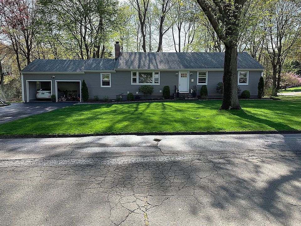 Nothing short of new construction. Beautiful oversized ranch was gutted to the exterior shell and rebuilt from the inside out. Everything from all hardwood floors, sheetrock, insulation, plumbing, electrical, doors, trim, roof, siding, and windows are completely new. Newly redesigned open floor plan. Gorgeous new custom kitchen with large center island and Carrera Marble counters. 3 new modern tiled baths. Master br suite with walk-in closet and large master bath. 2-car garage enters into newly designed mudroom. Full finished basement adds another 1200sf for over 3000sf of total living space or perfect in-law set up. New high-efficiency furnace, Tankless water heater, and central AC. Large flat corner lot. New deck. Gorgeous neighborhood.