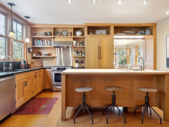 15 NORTH PARK STREET- Stylish and thoroughly updated colonial sited on a spacious landscaped half-acre lot in one of the most desirable neighborhoods in Hanover bordering Dartmouth College campus. Renovated with meticulous care to incorporate modern living and efficiency while embracing and preserving the rich history of the structure. The interiors are warm and inviting with several large gathering spaces perfectly balanced by more intimate private nooks. Beautiful natural light floods the house throughout. An expanded luxurious eat-in kitchen connects to a sophisticated formal dining room on one side and a cozy living room on the other–complete with custom stained glass windows for a lovely artful accent–while a separate book-lined library completes the other corner of the first level. The second floor features a grand primary suite and two additional bedrooms with a shared full bath. The finished lower level provides versatile extra living space with a family room & fireplace, and bonus room with an additional bath, all of which has a walkout egress to the back yard. Once used as a separate living quarters, the third level of the home is teeming with potential for additional living space. Enjoy the landscaped grounds either from the comfort of the deck and hot tub off the back of the house or the covered front porch. Property is subject to a right of first refusal with Dartmouth College. Showings begin Friday, March 15.