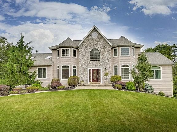 One of a kind 6,040 sqft (including basement) home situated on magnificent landscaped grounds on the beautiful mountains of Pomona. Offering tranquility and privacy. This elegant home features 6 bedrooms, 4 full bathrooms,stunning living room/ great room with vaulted ceilings and oversized windows overlooking majestic views. A full master suite unit on main floor with private bathroom, living room and an additional room. Very large eat-in-kitchen with granite countertops and ss appliances, sliding doors off the kitchen leading to a HUGE deck with awning. Staircase lead to 3 full bedrooms, bathroom and a second master suite with tray ceilings, marble bathroom and walk-in closets. Gleaming hardwood floors throughout the house and beneath all carpets. The walk-out basement boasts 11 foot ceilings! Attached 3 car garage with new doors. A/C: 3 zone, Sprinkler system: 5 zone, New hard wired smoke and carbon monoxide detectors throughout the home.Artistry and quality throughout! A MUST SEE!!