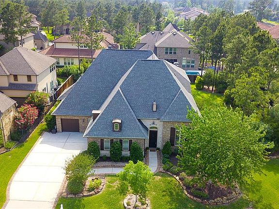 Custom GEM by Darling Homes nestled in the prestige Paloma Gove neighborhood of Creekside on a rare find 1/3 acre lot located 1 mile from the highly regarded Timber Creek Elementary School. Home features large master retreat downstairs complete with sitting area, spacious master closet and walk-in shower in master bath. There are 2 more bedrooms downstairs with walk-in closets and en suite baths. The kitchen boasts of beautiful marble counters, copper sink, huge island bar and GE Monogram appliances. Family room with stone fireplace is open to the kitchen, providing a warm and inviting atmosphere great for entertaining. Upstairs you will find an open game room, media room, bedroom with en suite bath, half bath and tons of storage. Home features a mosquito misting system valued at over $20K by MistAway so you can enjoy the lovely covered patio with fireplace. Ideal location - minutes from Rob Fleming Park and Aquatic Center, close to the Grand Parkway, I-45, Exxon and The Woodlands.