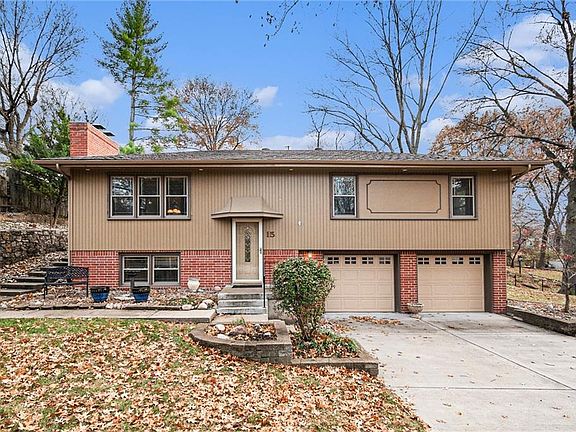 Welcome to this split-entry home offering 3 bedrooms and 2.1 bathrooms. Enjoy the comfort of brand-new carpet in all bedrooms and fresh paint in the master bedroom, bedroom 2, and full/half bath. New items - Electrical Panel 11/24, dishwasher 11/24. Newer items - windows, driveway, closet systems. The inviting living room features wood floors and a brick surround fireplace (photo depicts simulated fire). The updated kitchen has painted cabinets, a built-in hutch, and a convenient desk area. Adjacent, the dining room has wood floors and French doors leading to a lovely back patio. Downstairs, the family room includes another fireplace (photo depicts simulated fire) and a wet bar, perfect for movie time. The lower level also features a full bathroom with a shower and a laundry area located in the garage. Outside, the backyard is enhanced by terraced retaining walls, a spacious deck with a gazebo, and plenty of room to relax or entertain. Conveniently located near highway access and downtown Kansas City, this home offers both comfort and functionality. Welcome Home!