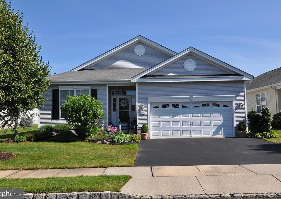 Four Seasons is a premier active adult community in Mansfield Township. It is centrally located for great access to both Philadelphia and NYC. This sought after Ivy model features two bedrooms, two full baths, and a two-car garage. The sunlit entry foyer leads into both the formal living room and dining room. The eat-in kitchen features oak cabinets and Corian countertops as well as a granite sitting island and breakfast nook. The breakfast nook opens into the relaxing great room, both with engineered wood flooring. The master bedroom offers a walk-in closet and a private bath. There is a second bedroom with a hall bath. Laundry room with washer and dryer plus shelving in garage for extra storage. Extras include a private, landscaped rear patio, two-car attached garage, California closets throughout, newer HVAC and hot water heater. Conveniently located, close to Rt 130, 206,295 and the NJ Turnpike.