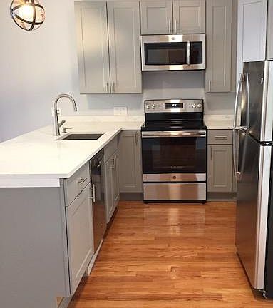 NO FEE! New Renovation. Stainless Steel Appliances, Quartz Counters, hardwood floors, In unit laundry, Pet friendly and includes parking. June 1 move date, possible May 1. Owner pays for water/sewer, trash and snow removal.