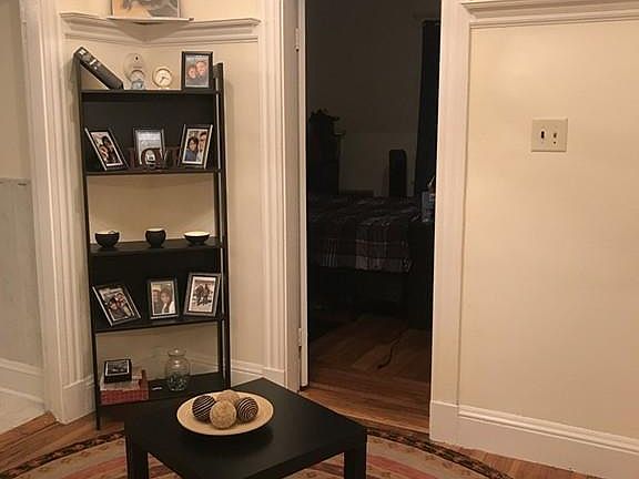 Spacious 1-bedroom apartment on the first floor. Unit has hardwood floors throughout, eat-in-kitchen with gas stove and refrigerator, large living room, good sized closets, on street parking, available for June 1st move in.