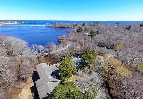 Renowned Eastern Point is private setting for this Contemporary, bright-light architectural home with fabulous water views of Niles Pond & ocean.Designed for indoor/outdoor hospitality with ample accommodation for a full house! Stone fireplace captivates attention in LR with cathedral, beamed ceiling.Rambling single-level living design enhanced by finished lower level (approx. 1,200 sf), complete with Family Room, jacuzzi bath, guest space, storage rooms.Super-sized, triple-tiered deck invites outdoor living from LR, DR, MBR and kitchen plus access to heated pool area. Poolside hot tub, sport court with hoop, sandy play area and nearby Assn. tennis courts add to relaxed lifestyle. Main level Central A/C. Oversized double garage with storage loft. New/er roof, heating system, deck. Irrigation system. Private beach rights to nearby Brace Cove. Rental income history. Furnishings negotiable, excluding select sentimental items.Presented with AHS Home Buyer Warranty in "As Is" condition.