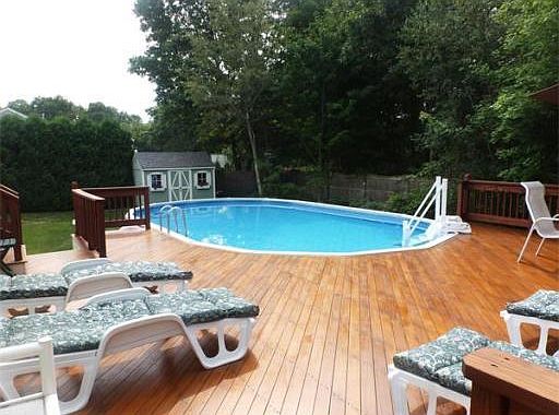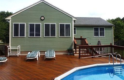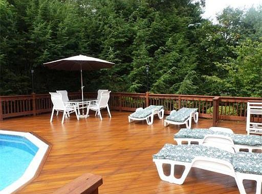 Mint condition home in great neighborhood setting! Open floor plan with oversized kitchen leading to a vaulted sunroom addition with access to gorgeous mahogany deck and pool! livingroom/diningroom, 3 bedrooms & full bath on main level, guest room/Playroom, family room w/fireplace, full bath & laundry on lower level. Many features include: beautiful paver walkways and patio, central AC, 2x6 construction, newer roof, cedar siding, gleaming hardwood floors & more! Set on wooded private lot!
