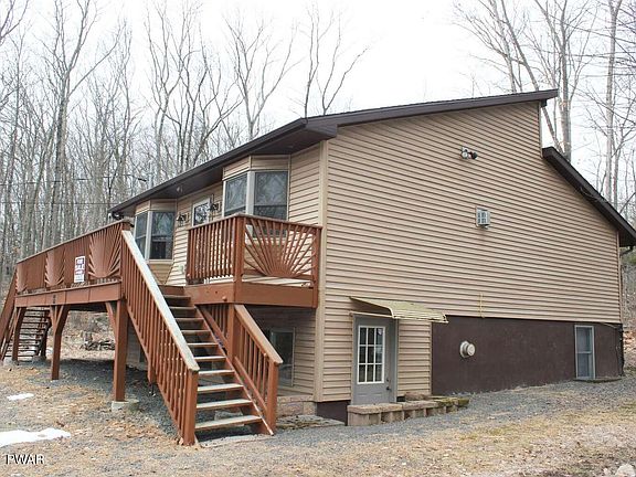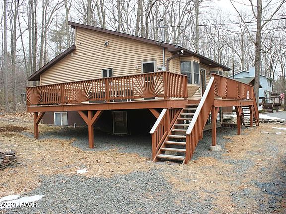 Welcome to your all-season getaway in this beautiful lake house with Wallenpaupack lake rights and BOAT SLIP included. The property sits on an improved lot of over 0.5 acres.The house has an open concept layout with the main floor boasting a well-appointed kitchen, cozy dining room and a grand living room. The living room boasts a gas fireplace and wood-paneled high ceilings with skylights. The master bedroom comes with its own gas fireplace, a full bathroom with a washer/dryer closet. An elegant staircase takes you to the ground floor with 2 more bedrooms, a cozy family room, a second full bathroom, and a mudroom.The house is equipped with 24/7 video security and WiFi-enabled lock with code access for added flexibility. Rentals OK.