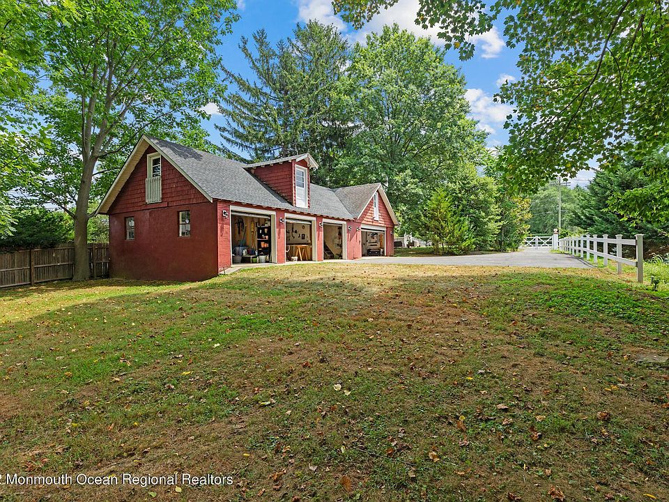 Best of both worlds! A charming home, plus a two-story, detached, 5 car garage. Both are sitting pretty on a gorgeous half acre lot. The moment you enter this ranch style home you will be blown away by its uniqueness & its open concept. The sunny and bright breakfast room, with an oversized picture window, overlooks the most picturesque backyard. Newly updated full bath adds to some of the special features. The full basement offers a warm and cozy finished family area with plenty of storage throughout. This hidden gem offers an unbelievable 5 car garage with dual staircases to an open huge full attic. A touch of ''Tuscany'' is brought to Freehold in the delightful, oversized backyard with above ground pool, fountain & patio. This special home is a delight to see! Newer roof on home. 11/22