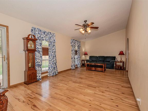 3 bedroom and 2 bath ranch sitting on a little over 3 acres! Great layout! Tons of space. Welcoming front porch perfect for all the holiday decorating! Larger living room with vaulted ceiling and tons of natural light. Large center island. 3 car garage and Main floor laundry with utility sink. Full unfinished basement with walkout! Patio and back deck for entertaining. Master suite with tub and separate shower. Walk in closet in the master.