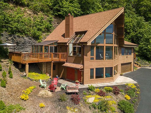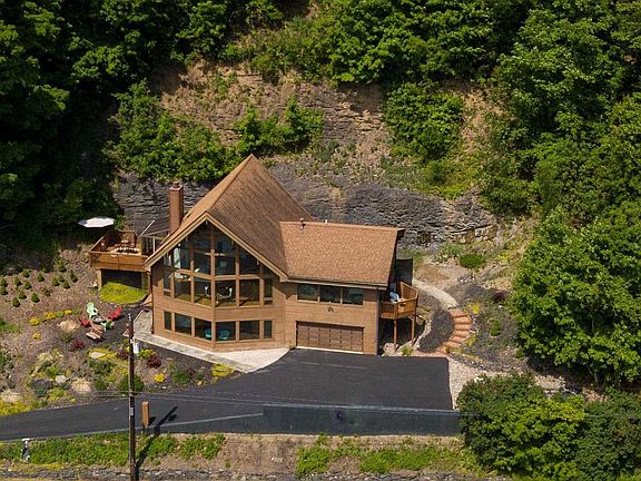 Don't miss this exceptional opportunity to own a custom built Lindal Cedar home priced well below market value. With direct Hudson River frontage, The River House provides a front row seat for the dazzling display of night lights on water, coupled w/ unparalleled views of the Hudson River. Get up close to bald eagles, blue herons, fireworks, sailboats, & the colorful illumination of the city lights & the twinkling necklace of the Mid Hudson bridge. 10 minutes to the Metro North train station for easy access to & from Metro NY. This home features dramatic post & beam architecture w/ soaring floor-to-ceiling glass & spacious open living spaces. In the great room you are greeted by a stunning white Arctic ledgestone wood burning fireplace detailed w/ glass mosaic tile & granite hearth. Enjoy cooking in your gourmet European style kitchen w/ modern Latitude cabinetry, Sigma granite counters, & upscale appliances. Retreat to your private & luxurious bedroom suite for a warm soak in your Aquatic Infinity jetted hot tub next to a wall of windows to enjoy river views & the romantic ambiance of the Looking Glass fireplace. The spa inspired master bath features a custom Travertine stone shower w/ rainfall shower head, crystal fixtures & body sprays. Cabinetry by Latitude w/ ornate glass sink bowls, laundry and walk-in closet. The 1st floor features a family room & 2 additional bedrooms. One currently openly adjoined w/ family room. A Silent Servant Dumbwaiter provides effortless transport of firewood & groceries between floors! This level opens to an inviting bluestone patio w/ a fire pit surrounded by extensive perennial gardens, a collage of ornamental trees & sheer bluestone cliffs. In front of the home on the river bank, existing dock hookups provide possibilities for a floating boat dock under the historic Rights of Enjoyment. Lindal Cedar Homes are built w/ the highest standards of construction & energy efficiency. Lindal Polar Wall System was a fine choice achieving the highest R values & superior insulation. There is 4 zone radiant heat in all floors, even the garage! A very private setting yet centrally located to Vassar Medical Center, many farm to table eateries, wineries, & festive New Paltz w/ its many trails & mountains. Plus, the new Walkway Over the Hudson State Park is just up the road! Esteemed universities such as Vassar, Marist & SUNY New Paltz just minutes away. This home is truly spectacular & will exceed your highest expectations!